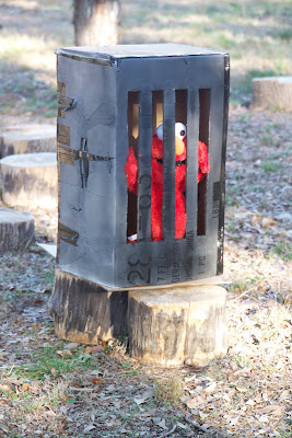 Our first stop was the Sheriff's office to find out more about poor Elmo's disappearance. Guess who answered the door? None other than Woody, Scarlett's favorite Toy Story character. (The role of Woody was played by Danny, Randy's son.)